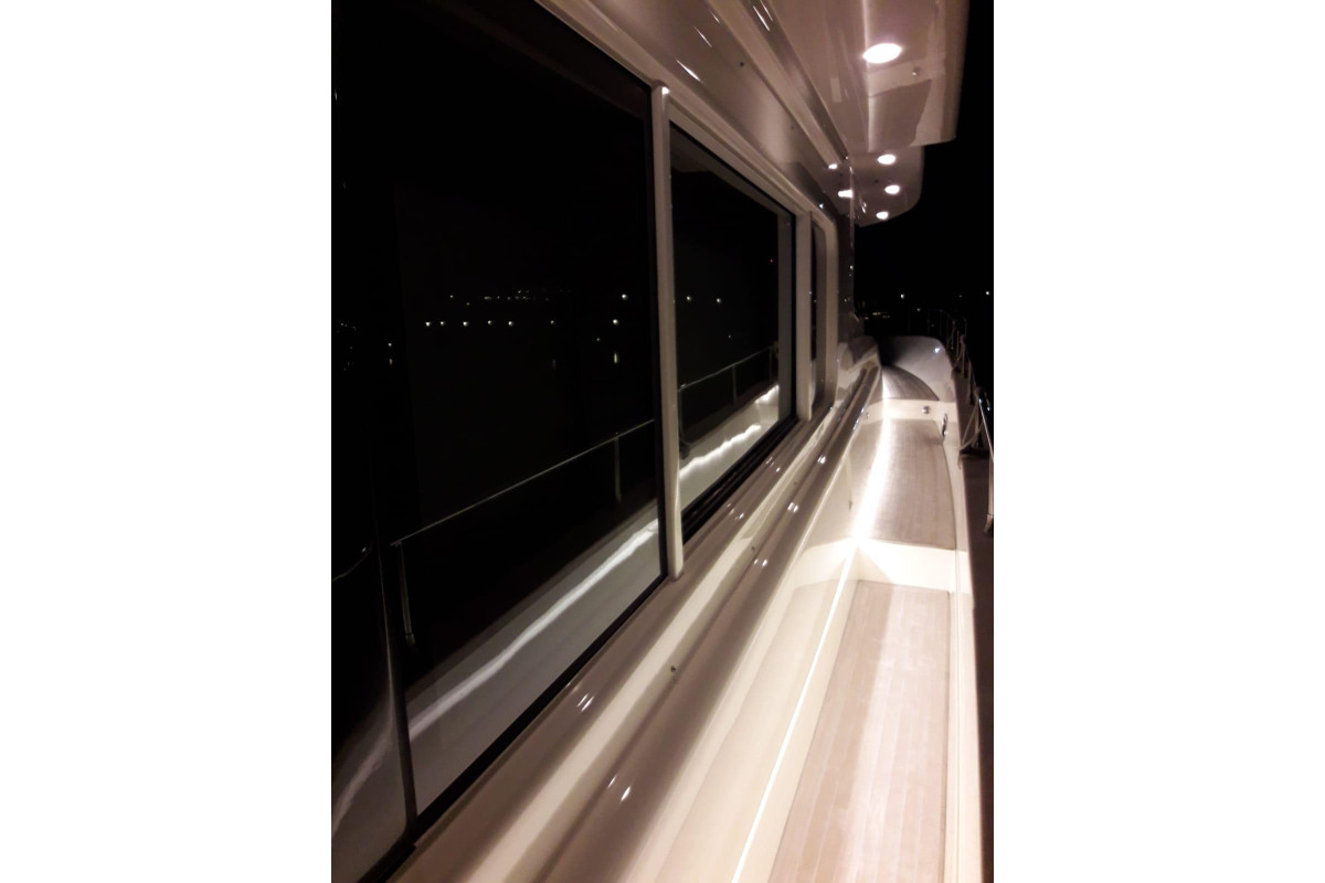 The interior is a masterpiece of refined woodwork, fine leather, and premium fabrics, creating a warm and inviting atmosphere. Her smart layout ensures comfort for both owner and guests, making her ideal for family cruising as well as entertaining.