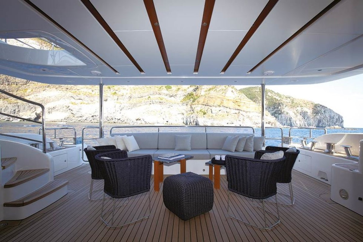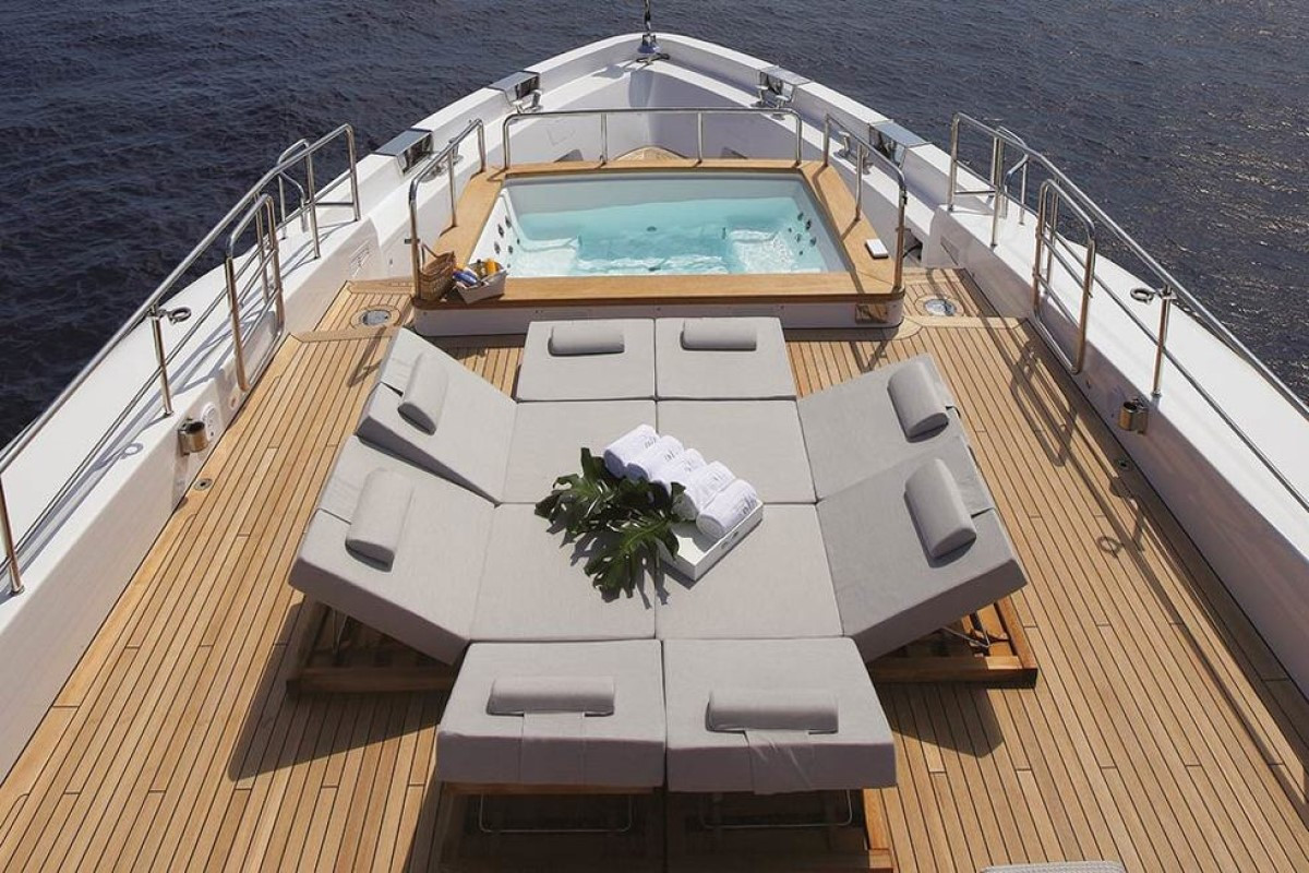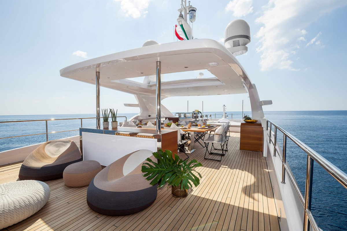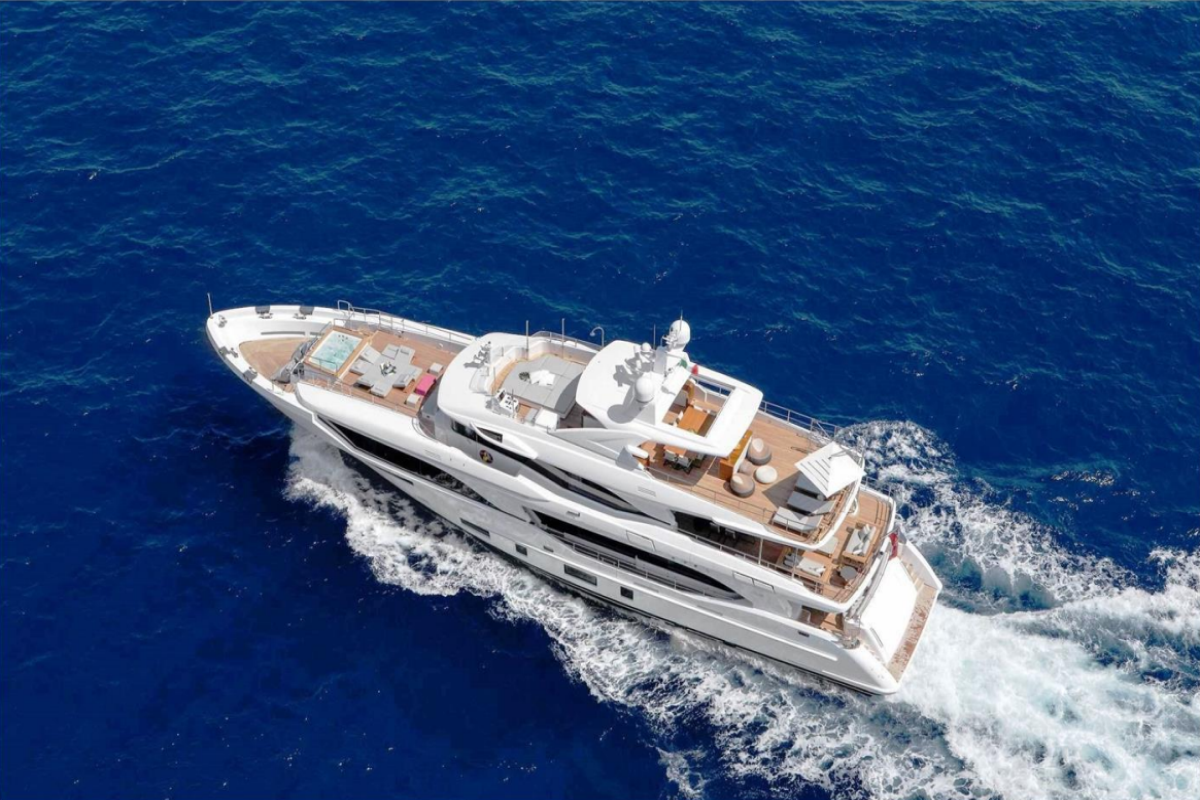 Benetti Mediterraneo 116 is a 35.3 m / 115′10″ luxury motor yacht. She was built by Benetti in 2019. With a beam of 7.7 m and a draft of 2.15 m, she has a steel hull and aluminium superstructure. She is powered by MAN engines of 1450 hp each giving her a maximum speed of 16 knots and a cruising speed of 14 knots. The motor yacht can accommodate 10 guests in 5 cabins with an interior design by Achille Salvagni and an exterior design by Giorgio Cassetta.