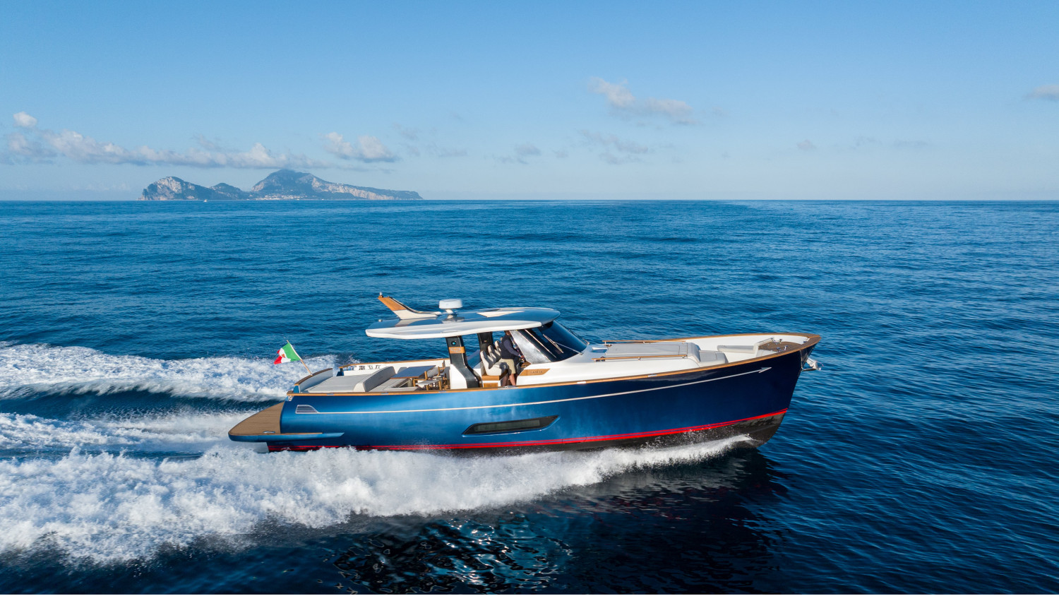 The Lancia Aprea 52 motor yacht, crafted by the renowned Lancia Aprea brand since 2023, is a 15.30-meter lobster boat designed for luxury and performance. Featuring two guest cabins and a shallow draft of just 0.80 meters, this yacht achieves impressive speeds of up to 34 knots. Constructed with a fiberglass/GRP hull, the Lancia Aprea 52 is CE-certified, making it ideal for offshore journeys up to 200 miles from the coast.