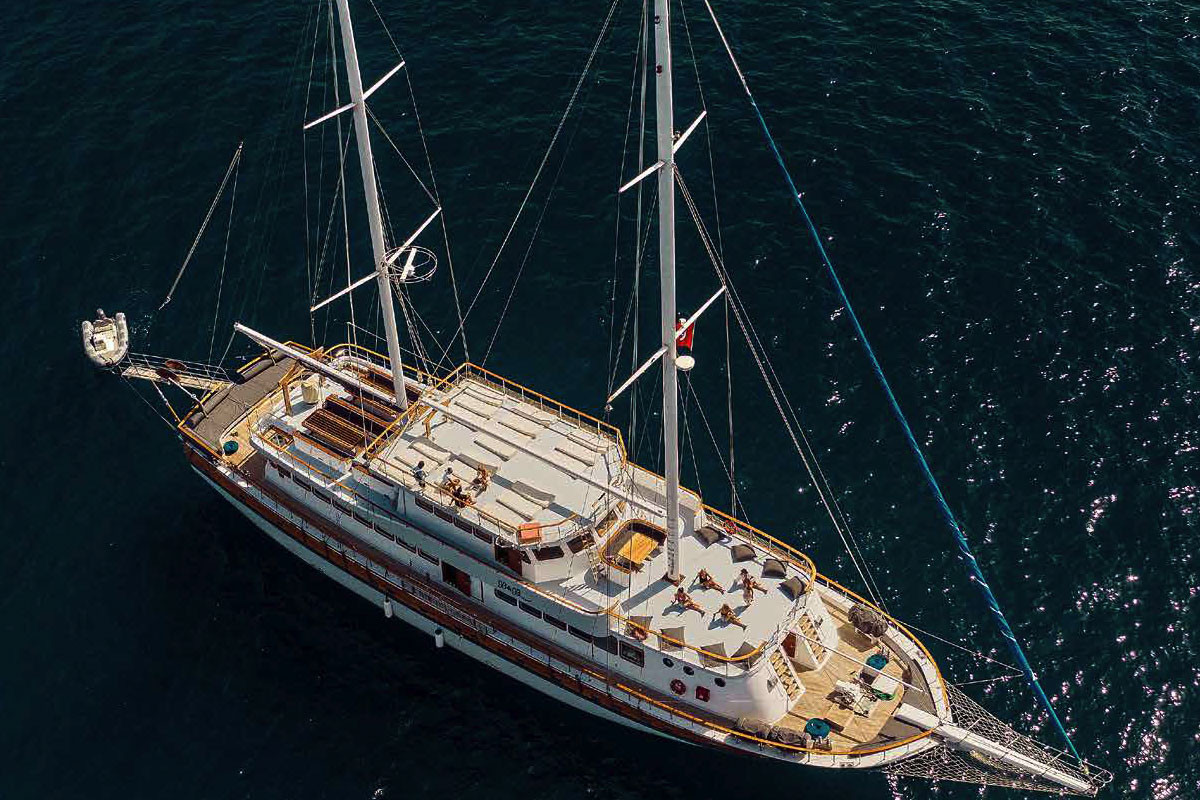 There are enough sun bath cushions, chairs and services for every single guest. This yacht that is built to make our guests live the comfort, the luxury and the serenity at the same time, can reach a speed up to 12 nautical mile.