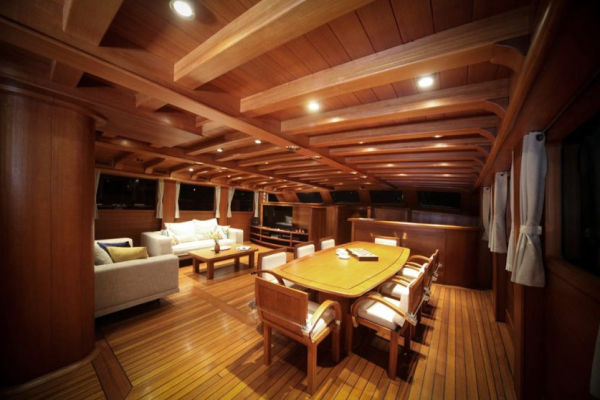 Nautique Yachting is proud to offer Gulet Cakir Yildiz for charter. She is designed to provide your special guests with an extraordinary yacht charter experience. Cakir Yildiz has been serving since 2015 with a hundred percent satisfaction guarantee and is one of the most preferred super luxury yachts with numerous references and repeated reservations. You can easily charter Gulet Cakir Yildiz by Guletyacht.net and then sail on an unforgettable cruise. The super luxury yacht is 43 meters long with 1 Master, 1 Double, 3 Twin Cabins, a total accommodation capacity of 10 guests. Each cabin is well-equipped with private shower and wc facilities and air conditioning to ensure a comfortable stay on hot summer days. All cabins have TV, DVD and music system. The decor of the Gulet Cakir Yildiz is tasteful, with its interior design exuding luxury. There is a TV, DVD and music system in saloon for your entertainment. You can lie back on cushions and sunbathe while your meals are being prepared in a fully equipped separate kitchen. Our team commits to ensuring clients enjoy a memorable vacation and to achieve that, each detail receives close attention. You can charter Cakir Yildiz easily with Nautique Yachting that has established a reputation for quality and reliability.